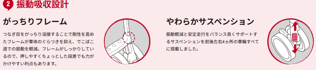 | 走行性能 | ストレートフレーム構造 | 振動吸収設計 |