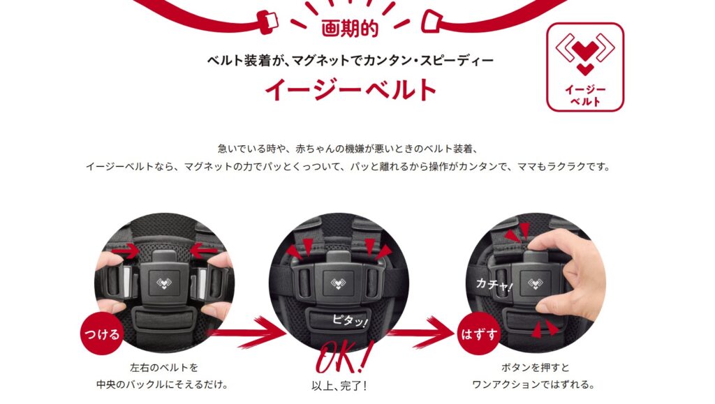 - バックル機能: アップリカラクーナクッションは最新のマグネット式を採用!